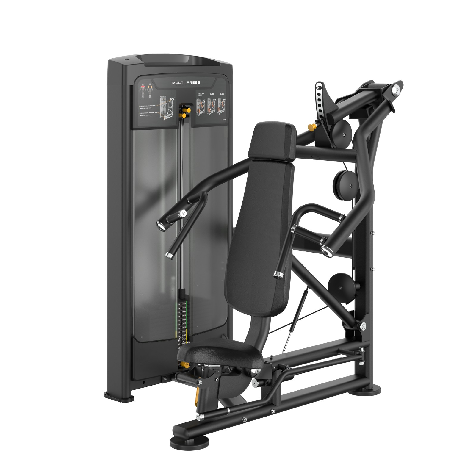 The Stark Fitness Multi Press is a state-of-the-art strength training machine designed to deliver a comprehensive upper-body workout with maximum efficiency and comfort. Engineered with versatility in mind, it allows users to perform chest press, incline press, and shoulder press exercises—making it ideal for targeting the pectorals, deltoids, and triceps.