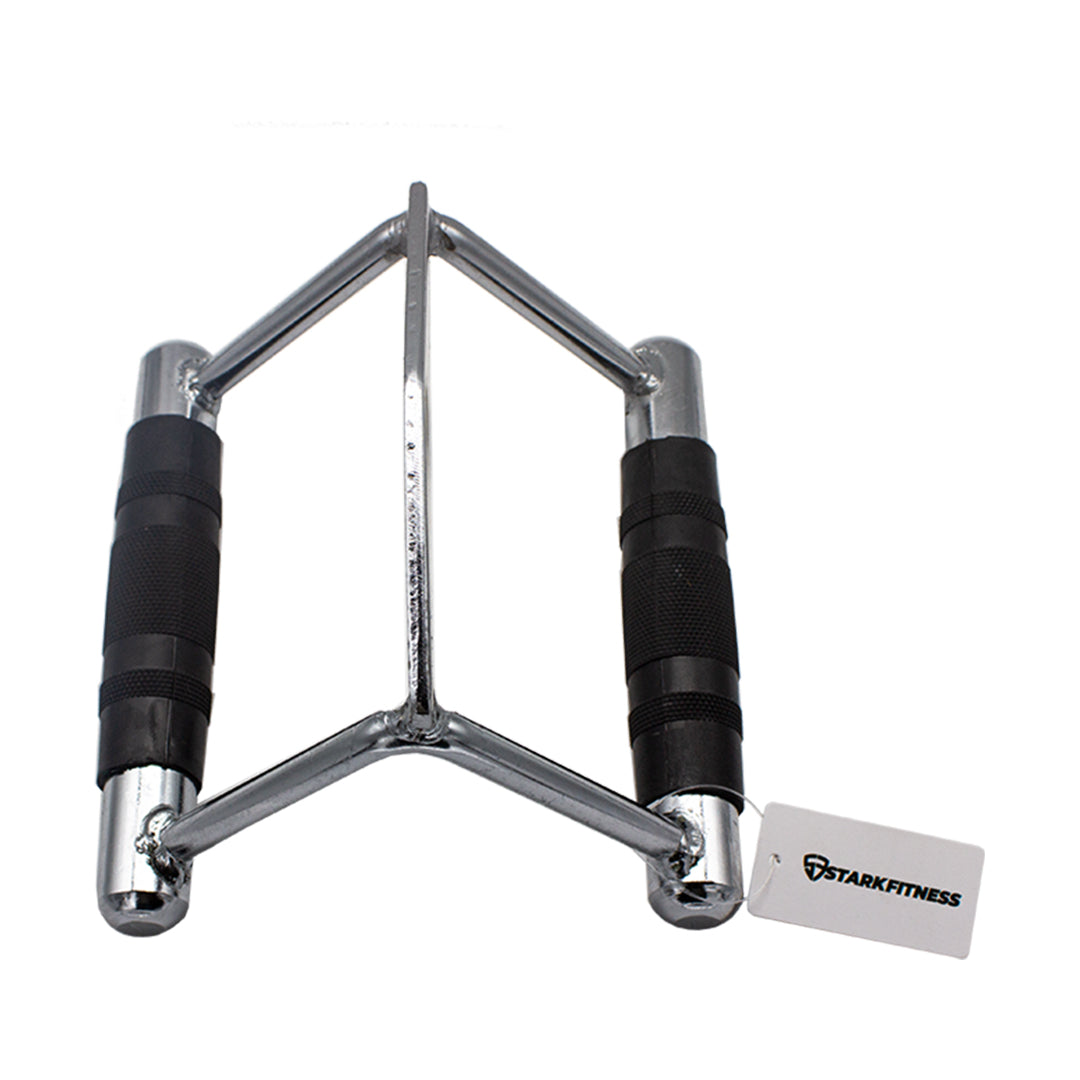 Elevate your back and arm workouts with our Stark Fitness Rowing V-Handle Cable Attachment, meticulously engineered to provide superior performance and versatility. Designed to target multiple muscle groups effectively, this attachment is an essential tool for anyone looking to build strength, muscle definition, and endurance. The Rowing V Handle will make your grips feel more comfortable during a workout so you can perform a variety of row-type exercises.