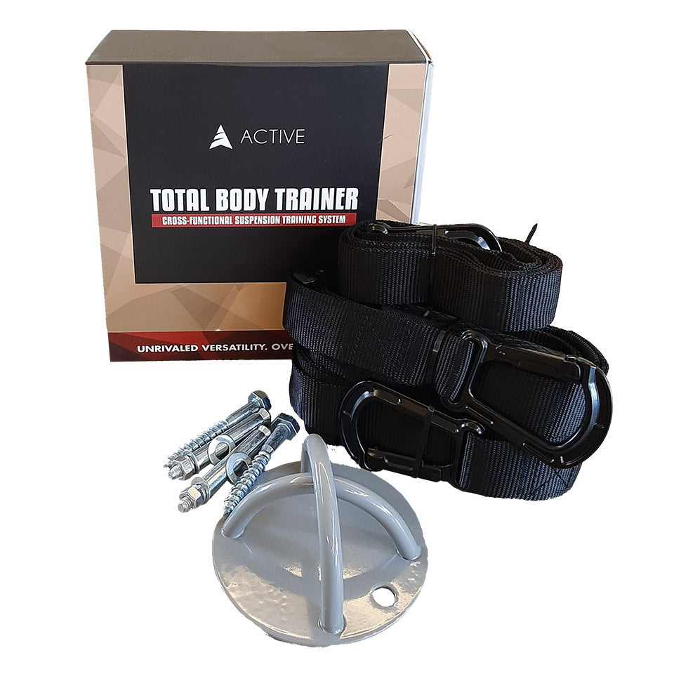 The Total Body Trainer aids in achieving the overall body strength, core stability, and balance. This tool is vital in allowing individuals to have better control of their muscles and movement's intensity by adjusting to different body positions and motions. It may be anchored to door frames, stair banisters, and posts.